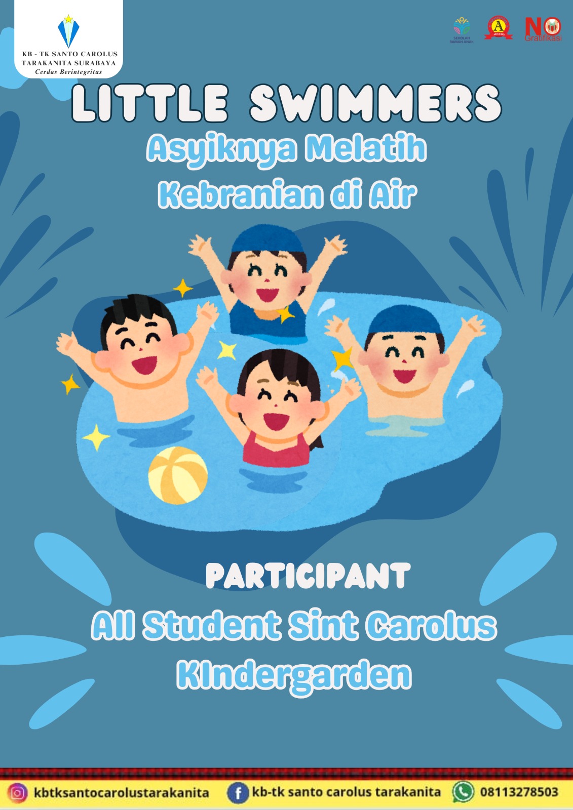 Kegiatan berenang menjadi salah satu momen yang paling ditunggu-tunggu oleh anak-anak TK. Dengan penuh semangat, mereka diajak untuk bermain air sambil belajar mengenal dasar-dasar berenang. Suasana ceria tampak dari senyum dan tawa anak-anak ketika merasakan segarnya air kolam.