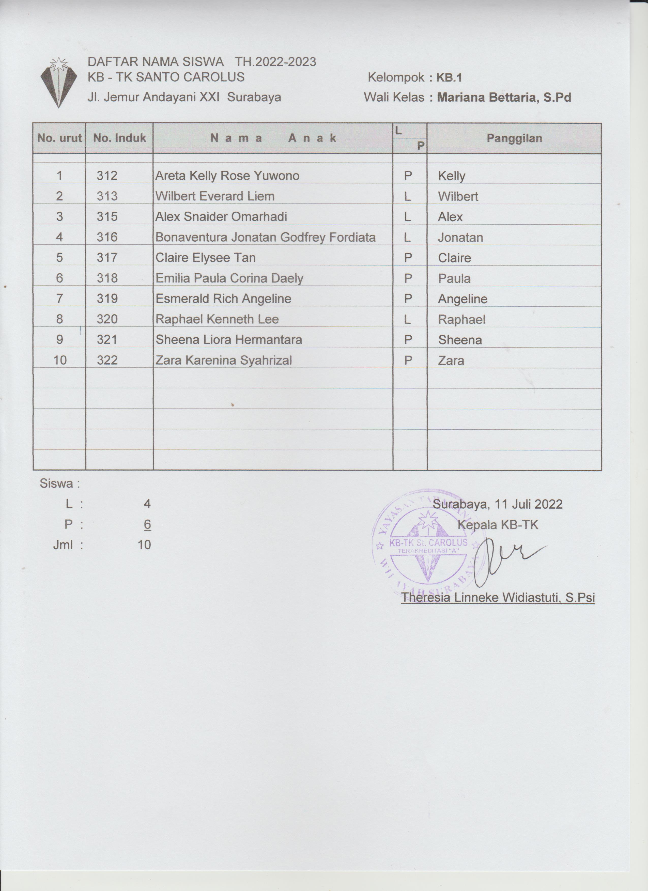 Jadwal masuk sekolah KB - TK Santo CarolusΒ