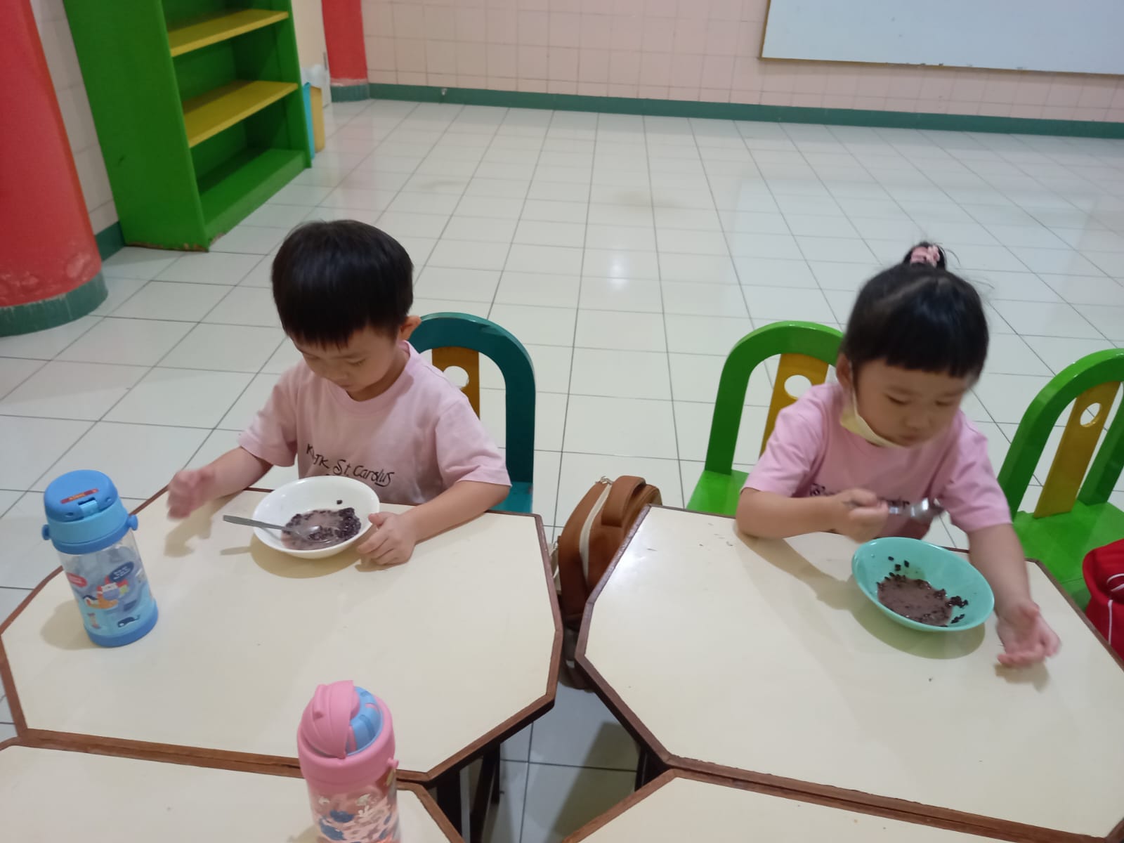 Anak-anak diperkenalkan dengan makanan Tradisional Indonesia yaitu bubur ketan hitam. Â